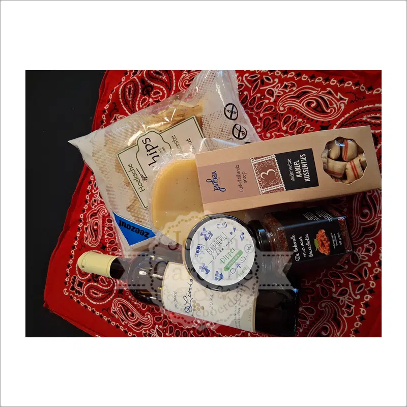 Dit Streekwijn pakket zit vol met heerlijke producten zoals wijn, chips, snoepjes, kaas, bruchettte en chips dipper. Dit alles verpakt in een duurzame verpakking.